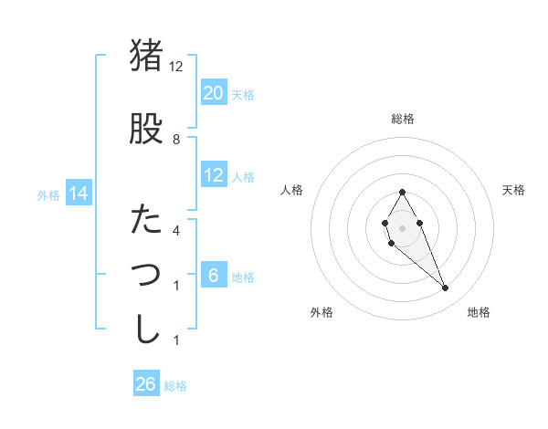 猪股 たつしさんを姓名の画数から五運を鑑定