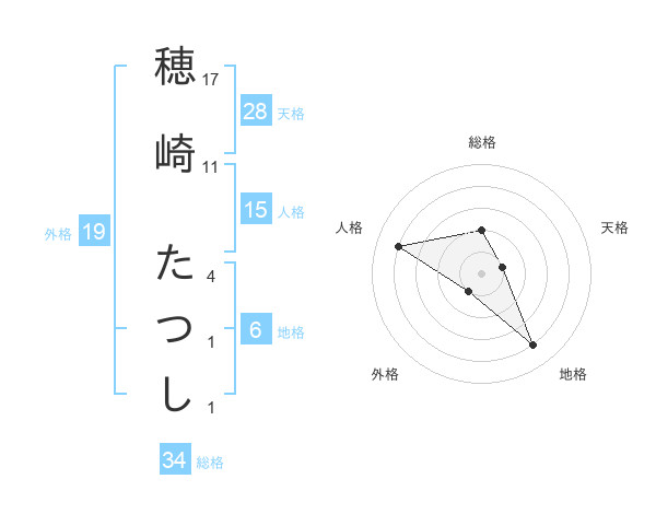 穂崎 たつしさんを姓名の画数から五運を鑑定