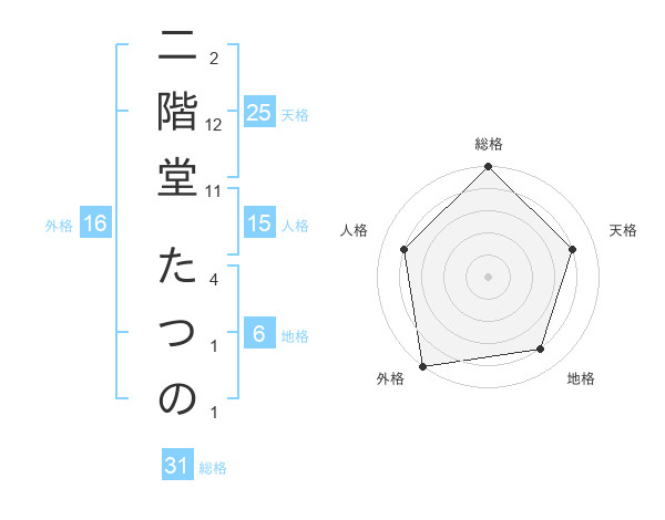 二階堂 たつのさんの天格は25画の4点!