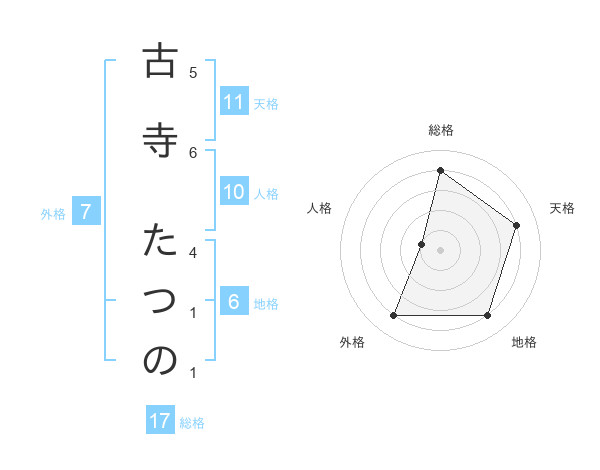古寺 たつのさんの総格は17画の4点!