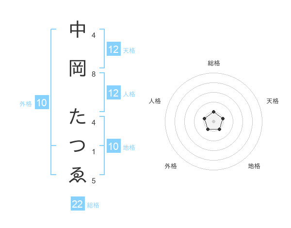 中岡 たつゑさんを姓名の画数から五運を鑑定