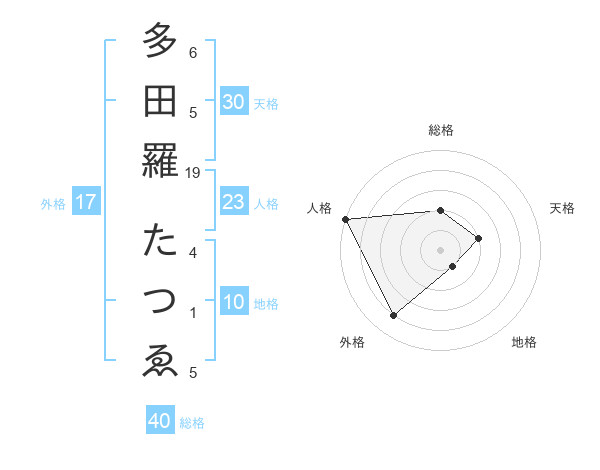 多田羅 たつゑさんを姓名の画数から五運を鑑定