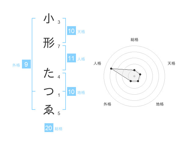 小形 たつゑさんを姓名の画数から五運を鑑定