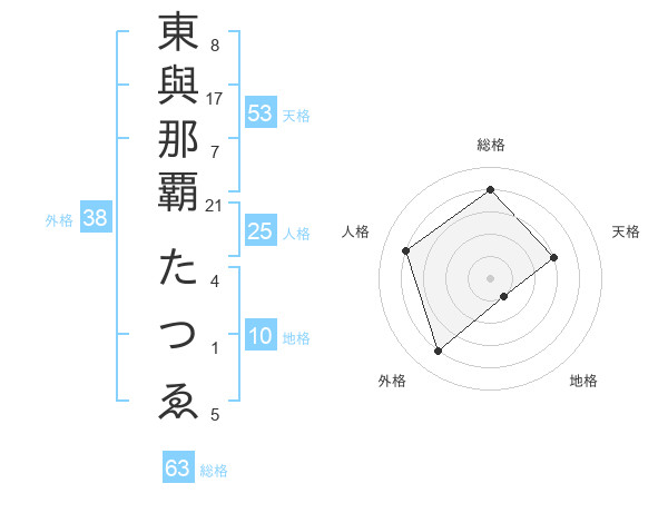 東與那覇 たつゑさんの名前の鑑定結果は!