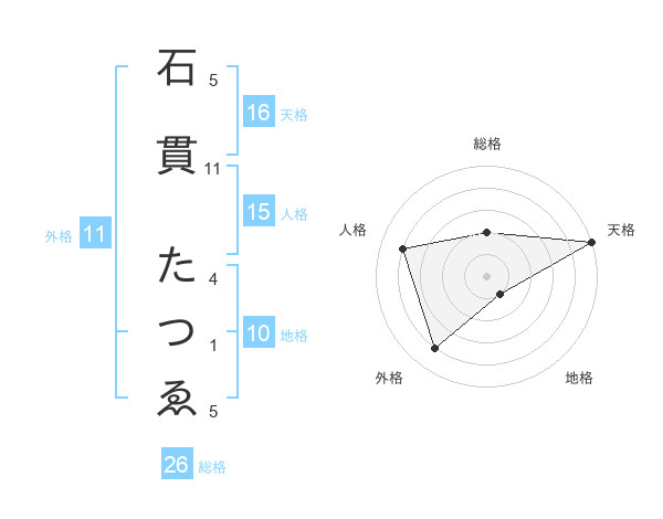 石貫 たつゑさんを姓名の画数から五運を鑑定