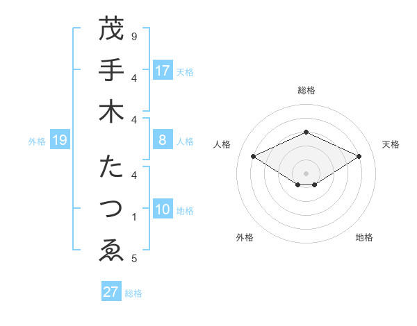 茂手木 たつゑさんを姓名の画数から五運を鑑定