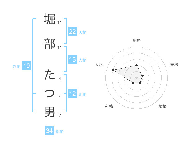 堀部 たつ男さんの総格は34画の2点!
