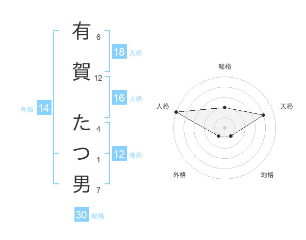 有賀 たつ男さんを姓名の画数から五運を鑑定