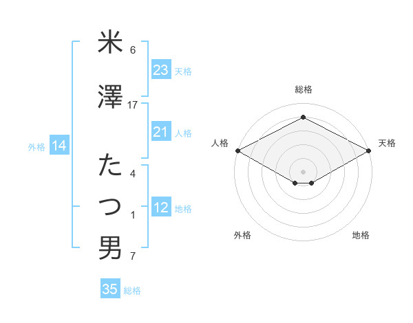 米澤 たつ男さんを姓名の画数から五運を鑑定