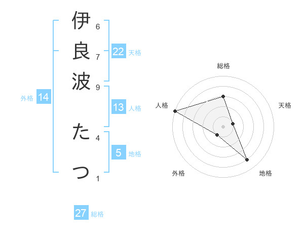 伊良波 たつさんの地格は5画の4点!