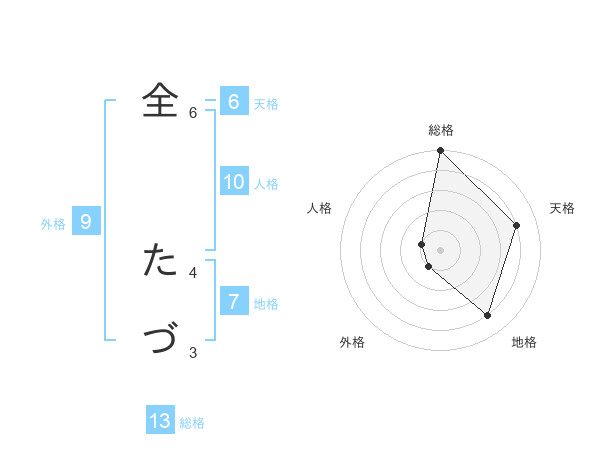 全 たづさんの総格は13画の5点!