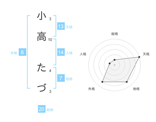 小高 たづさんの天格は13画の5点!