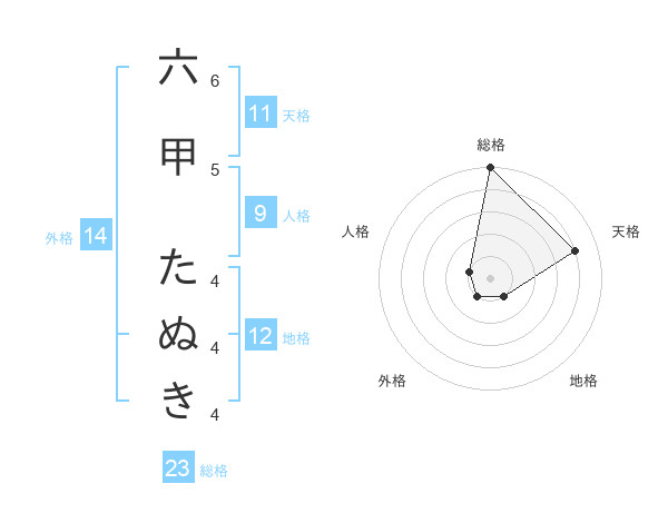 六甲 たぬきさんの総格は23画の5点!