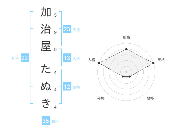 加治屋 たぬきさんを姓名の画数から五運を鑑定