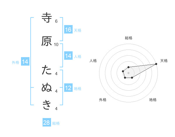寺原 たぬきさんを姓名の画数から五運を鑑定