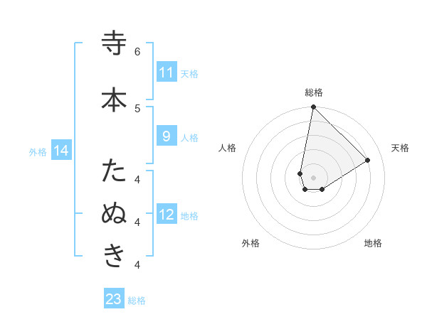 寺本 たぬきさんを姓名の画数から五運を鑑定
