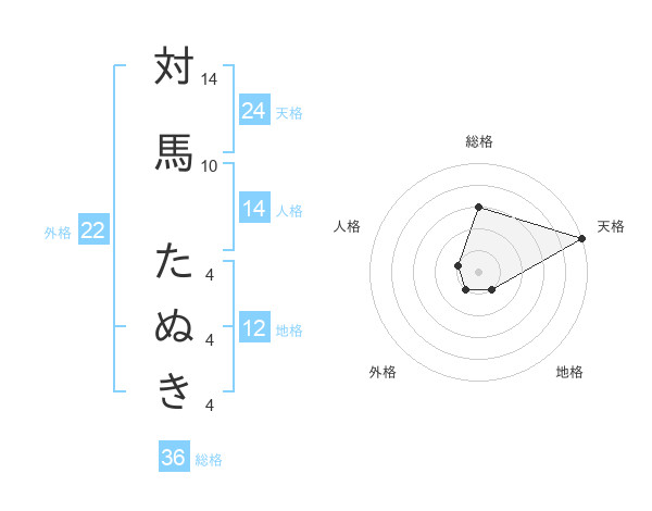 対馬 たぬきさんの総格は36画の3点!
