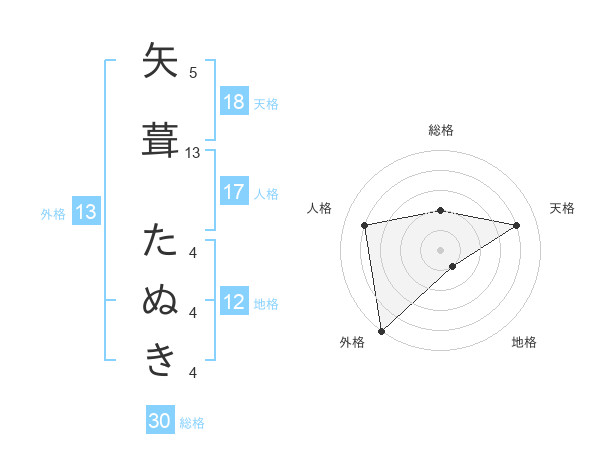 矢葺 たぬきさんを姓名の画数から五運を鑑定