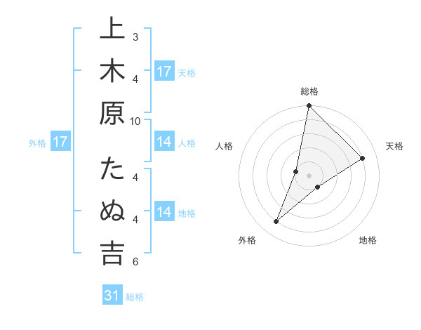 上木原 たぬ吉さんを姓名の画数から五運を鑑定