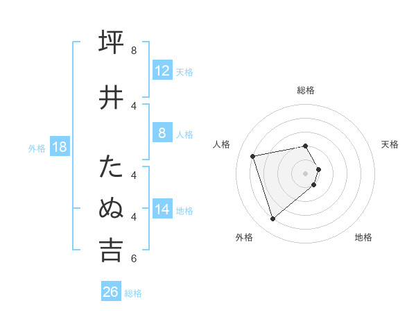 坪井 たぬ吉さんを姓名の画数から五運を鑑定