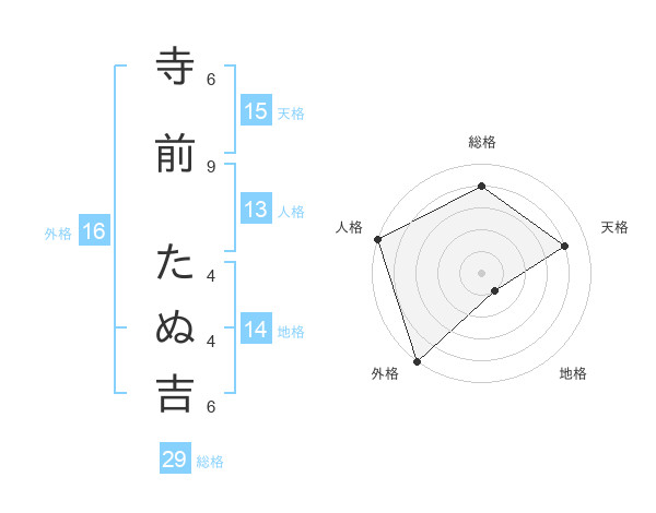 寺前 たぬ吉さんを姓名の画数から五運を鑑定