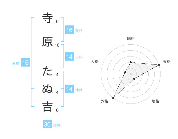 寺原 たぬ吉さんの天格は16画の5点!