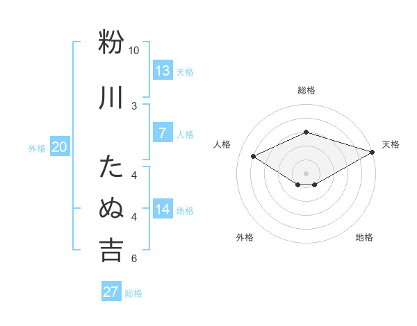 粉川 たぬ吉さんを姓名の画数から五運を鑑定