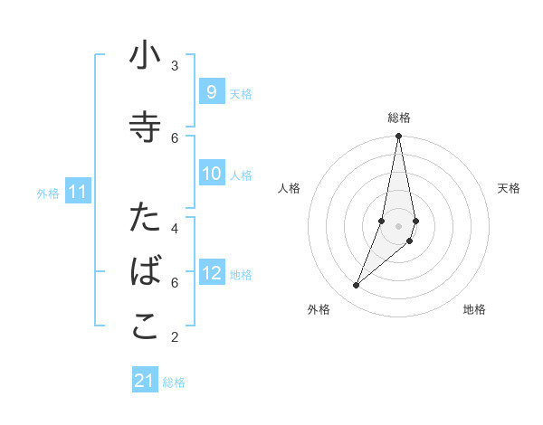 小寺 たばこさんの総格は21画の5点!