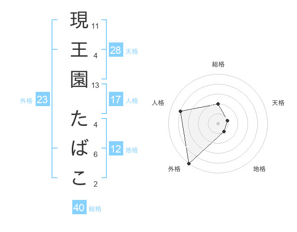 現王園 たばこさんを姓名の画数から五運を鑑定