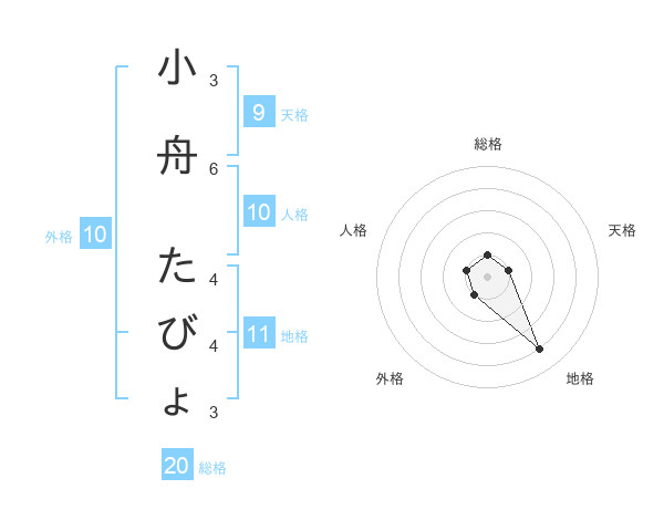 小舟 たびょさんの総格は20画の1点!