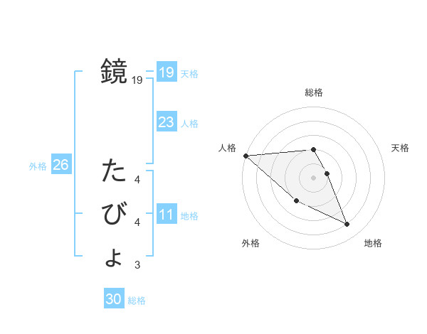 鏡 たびょさんの総格は30画の2点!