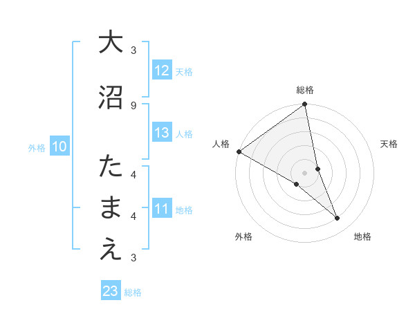 大沼 たまえさんを姓名の画数から五運を鑑定