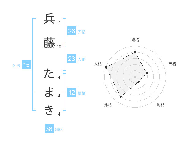兵藤 たまきさんの総格は38画の4点!