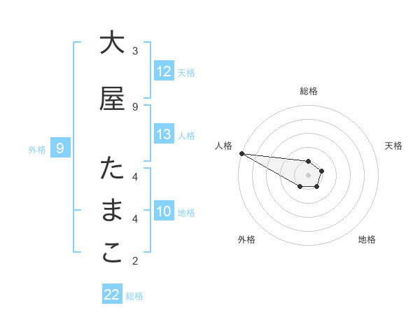 大屋 たまこさんの天格は12画の1点!