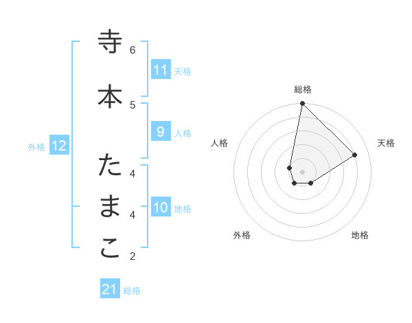 寺本 たまこさんの総格は21画の5点!