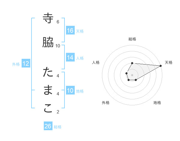 寺脇 たまこさんを姓名の画数から五運を鑑定
