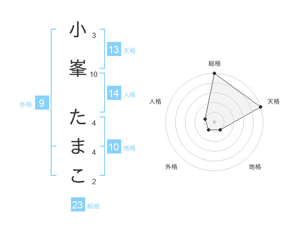 小峯 たまこさんを姓名の画数から五運を鑑定