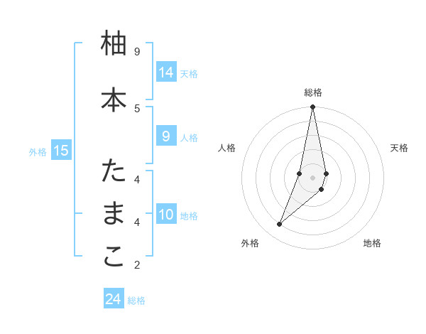 柚本 たまこさんの総格は24画の5点!