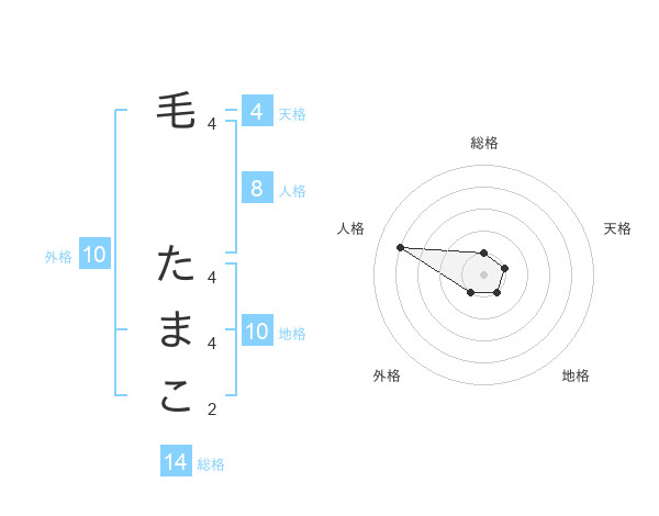 毛 たまこさんの総格は14画の1点!