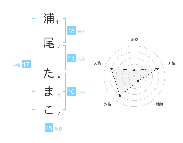 浦尾 たまこさんを姓名の画数から五運を鑑定