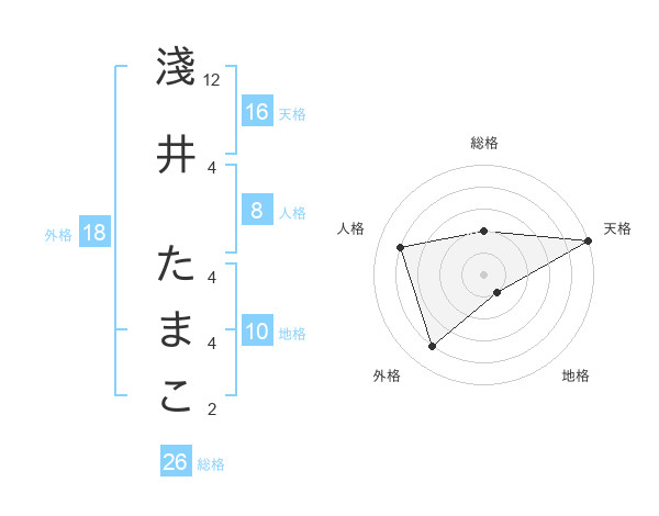 淺井 たまこさんの天格は16画の5点!
