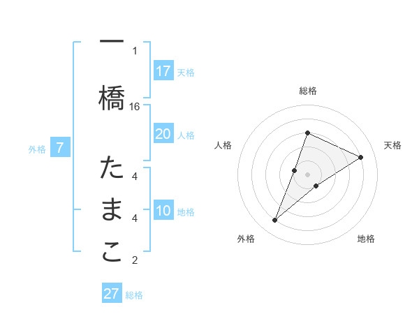 一橋 たまこさんの天格は17画の4点!