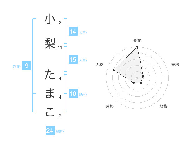 小梨 たまこさんの総格は24画の5点!