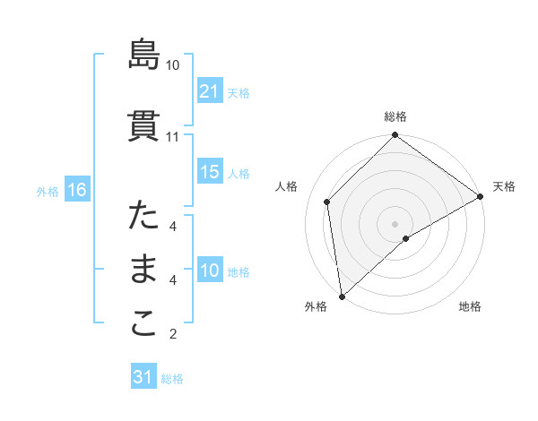 島貫 たまこさんの天格は21画の5点!