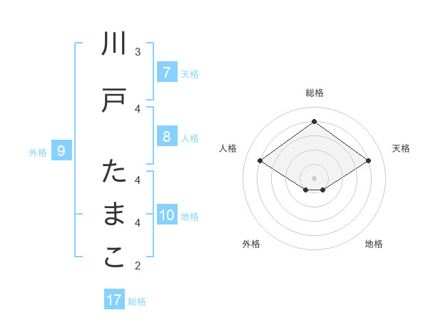 川戸 たまこさんを姓名の画数から五運を鑑定