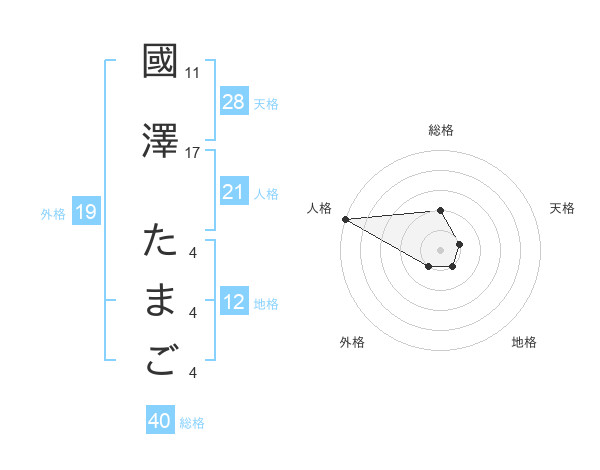 國澤 たまごさんの総格は40画の2点!