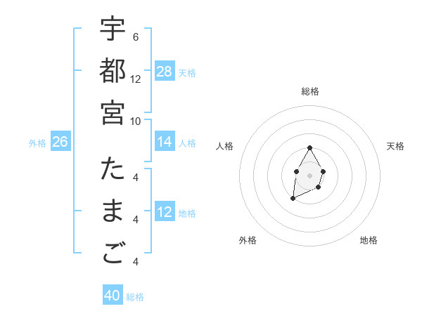 宇都宮 たまごさんを姓名の画数から五運を鑑定