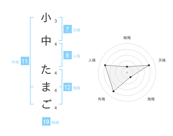 小中 たまごさんの外格は11画の4点!