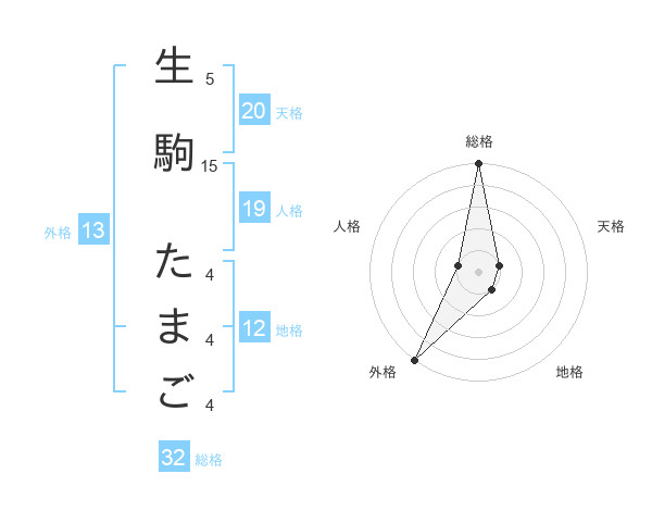 生駒 たまごさんを姓名の画数から五運を鑑定