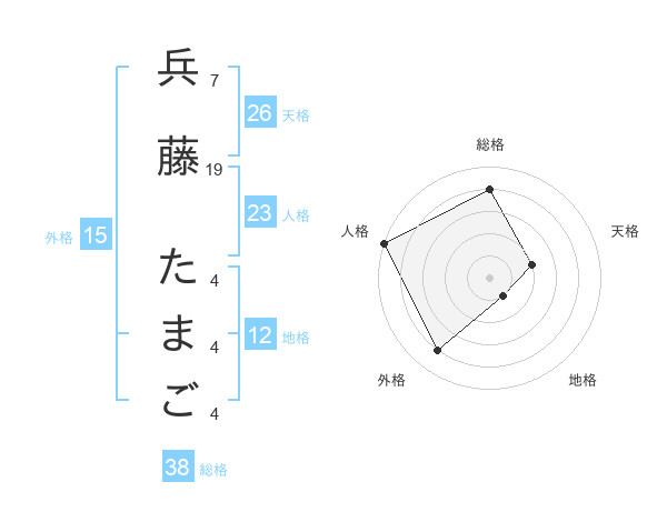 兵藤 たまごさんを姓名の画数から五運を鑑定